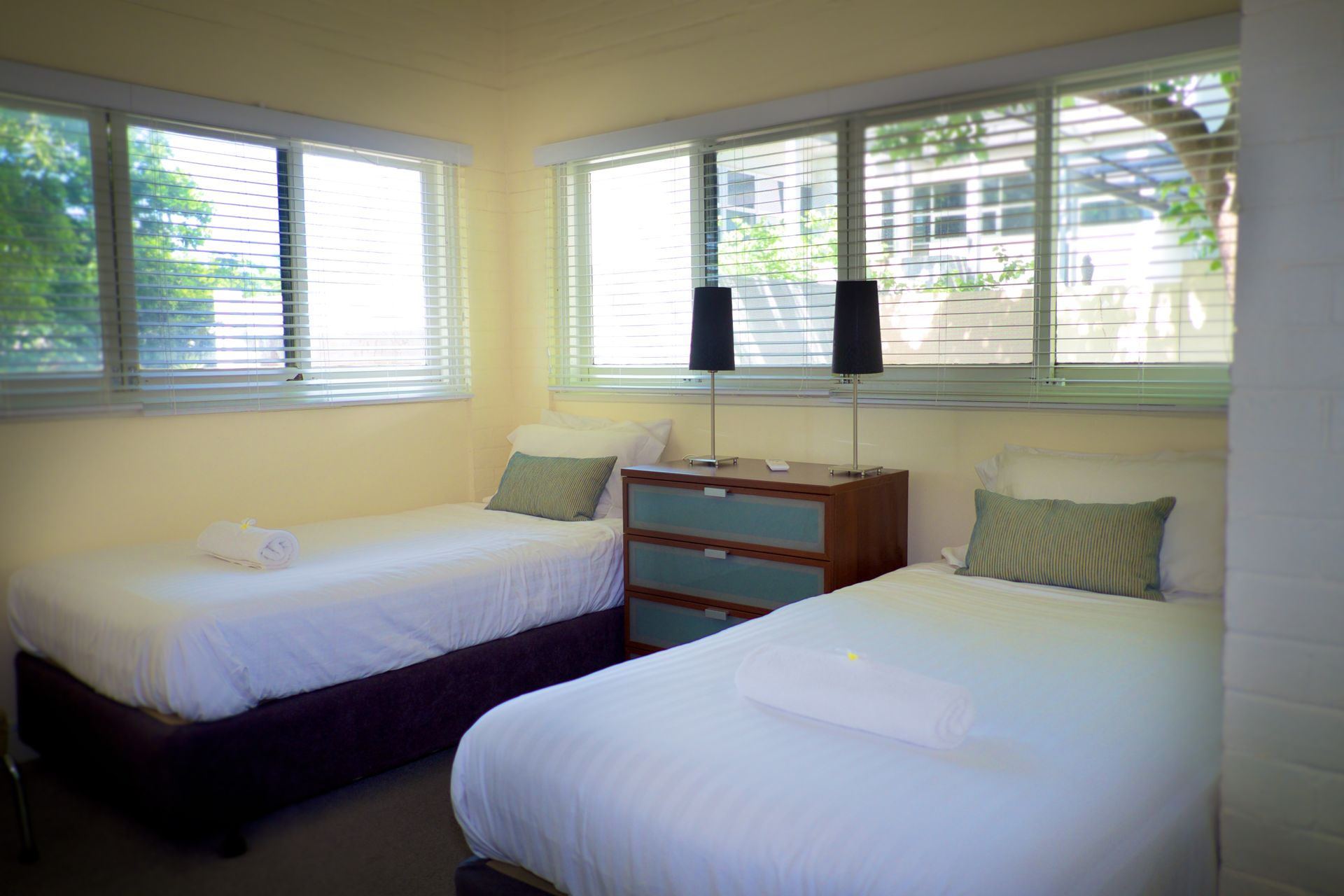 Bel Air Apartment features two bedrooms each equipped with plush and cozy beds. One bedroom boasts a luxurious queen-size bed, while the other is furnished with two equally sumptuous single beds. A single, stylishly appointed bathroom takes care of all your grooming needs. Plus, the apartment offers secure and convenient car parking for one vehicle.